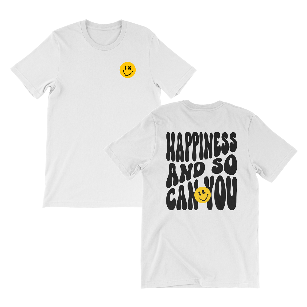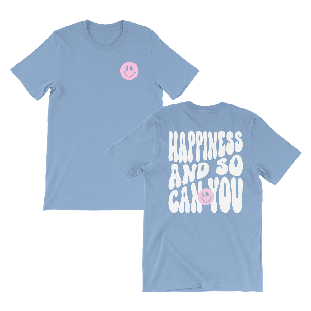 Happiness and So Can You - Printed on Back of Tee- Available in White or Blue
